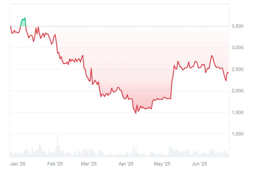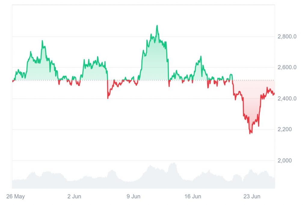 Der Ethereum-Kurs hat sich in den letzten Tagen spürbar erholt und notiert aktuell wieder deutlich über 2400 $. Nach einer Phase der Unsicherheit, geprägt durch geopolitische Spannungen, stellt sich nun die Frage: Kann ETH im Juli die psychologisch wichtige 3000-$-Marke knacken?