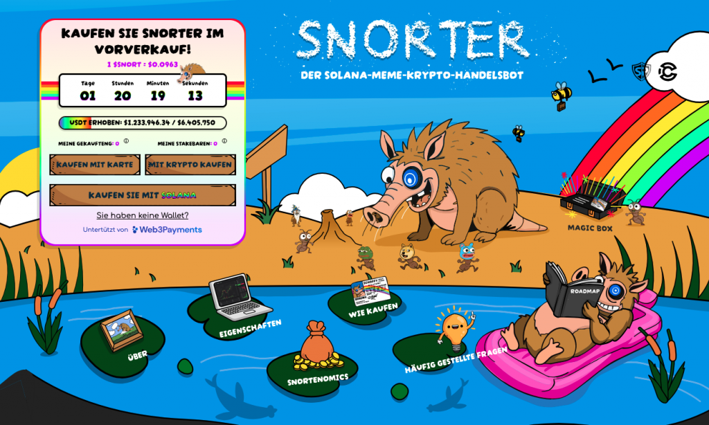 Um eine spannende Investitionsalternative zu ETH könnte sich heute unter anderem bei SNORT handeln. Das ist ein Coin, der sich im Gegensatz zu Ethereum noch ganz am Anfang seiner Entwicklung befindet. Tatsächlich steckt SNORT noch im Presale. Dementsprechend ist er noch auf keiner Krypto-Börse gelistet, sondern kann nur über die offizielle Website und das dort befindliche Presale-Widget zu einem rabattierten Festpreis von 0,0963 $ gekauft werden.