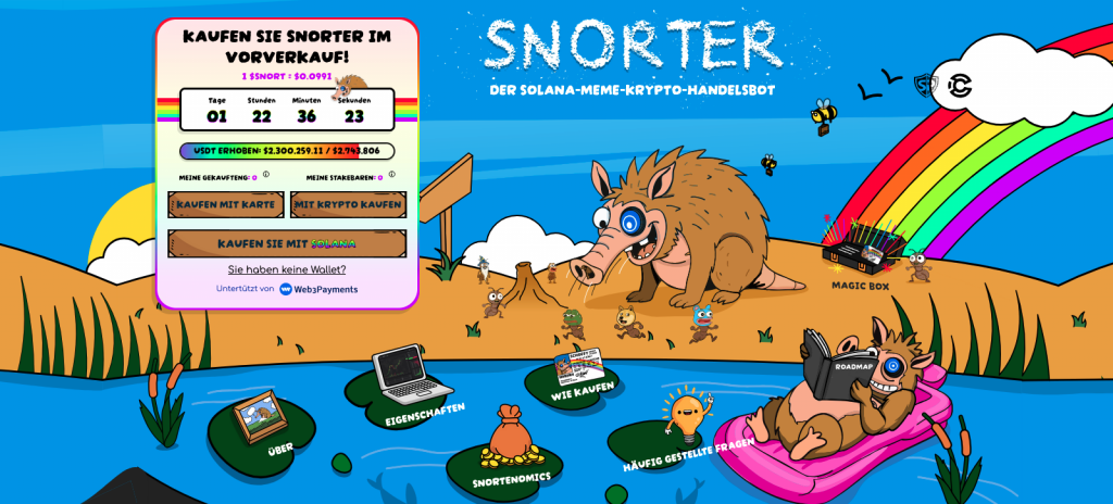 Zugang zu dem Coin bekommt man nur über die offizielle Webseite des dahinter stehenden Projektes Snorter und das dort befindliche Presale-Widget. Im Rahmen dieses Vorverkaufs wird SNORT gerade noch zu einem rabattierten Festpreis von 0,0991 $ verkauft. So kamen bis jetzt bereits über 2,3 Millionen $ an Funding von interessierten Anlegern zusammen, die bereit sind, das mit einem Presale einhergehende Risiko auf sich zu nehmen.