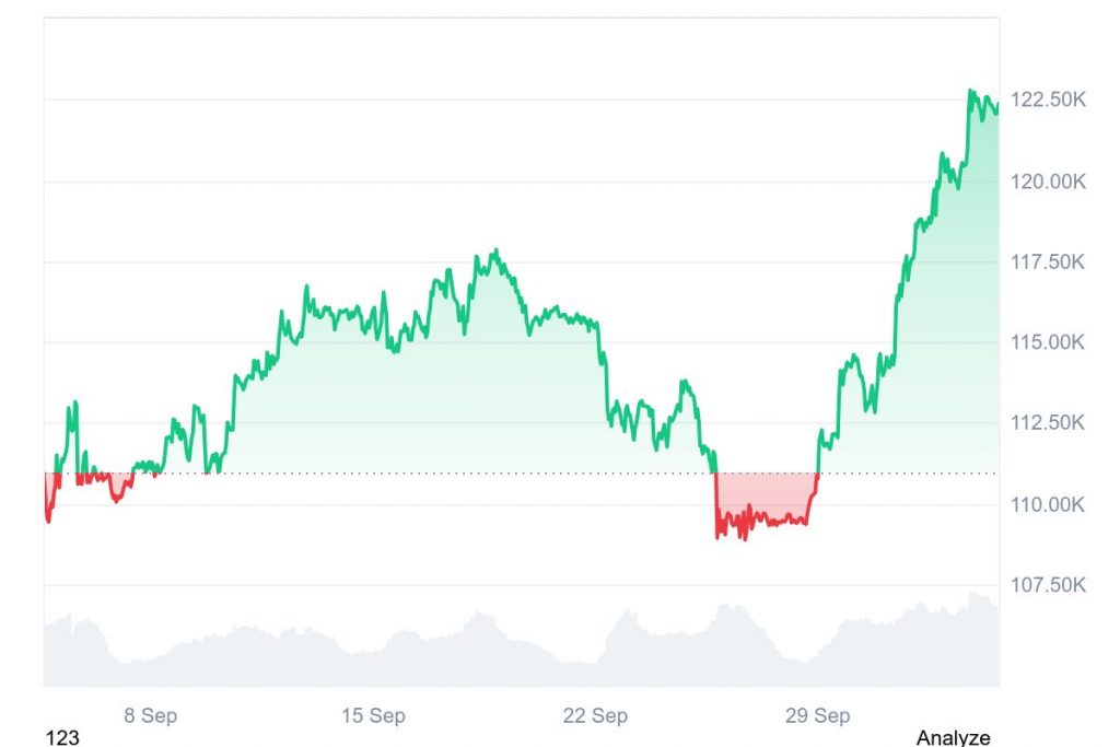 “Uptober” bahnt sich an und BTC steht schon wieder bei über 120.000 $
