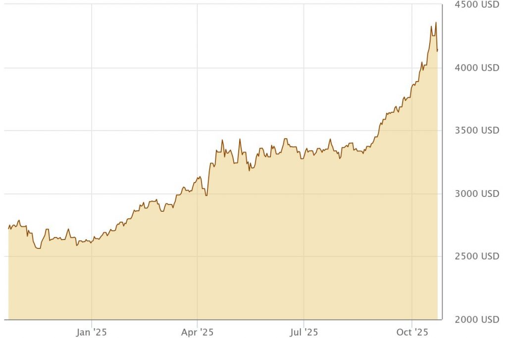 Vor allem eine Rallye hat die Finanzbranche in den letzten Wochen in Atem gehalten: der Gold-Bull-Run. Das Edelmetall hat zuletzt eine beispiellose Kursrallye durchlaufen und befindet sich im Jahresvergleich inzwischen zeitweise 60 % im Plus. Von einem Kurs von teils unter 2.600 $ pro Feinunze ging es im Verlauf der letzten 12 Monate bis auf ein All-Time-High von 4.380 $ aufwärts.