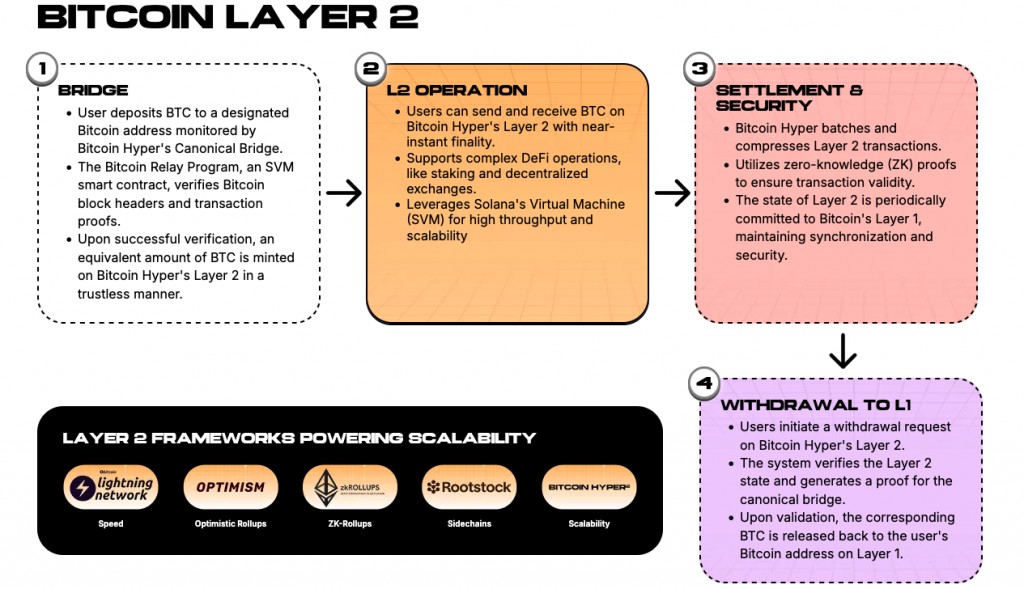 Dies macht BTC kaum noch attraktiv für die Nutzung in Micropayments oder DeFi-Anwendungen. Eine Layer-2-Blockchain wie Bitcoin Hyper könnte das ändern, Transaktionen auslagern, komprimieren und beschleunigen. Für besonders viel Effizienz bei Bitcoin Hyper soll die Solana Virtual Machine sorgen, auf der das Projekt aufbaut. So soll Solanas Effizienz gewissermaßen mit Bitcoin fusioniert werden.