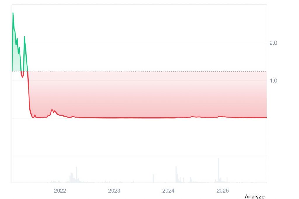 JASMY gibt es bereits seit 2021. Seine bisher größte Rallye verzeichnete der Coin direkt zum Launch. Da stieg er am 16. Februar auf ein Allzeithoch von bis zu 4,99 $ an. Im Mai und Juni 2021 gab es dann jedoch den großen Crash, JASMY fiel zeitweise auf nur noch 0,01 $ zurück und brach damit um über 99 % im Wert ein.