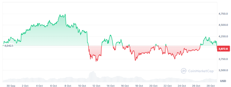Auch für die zweitgrößte Kryptowährung ging es in den letzten Tagen weiter aufwärts, um genauer zu sein über den Widerstand von 4.000 US-Dollar, welcher damit aktuell als Support fungiert. Im Schnitt von einer Woche kommt der Altcoin damit auf eine positive Entwicklung von 3,5 Prozent, gefolgt von 2,1 Prozent innerhalb der vergangenen 30 Tage. Wichtig wird in den kommenden Tagen insbesondere die Nachfrage aus dem institutionellen Bereich, der derzeit maßgeblich für die Entwicklung des ETH-Tokens verantwortlich ist.