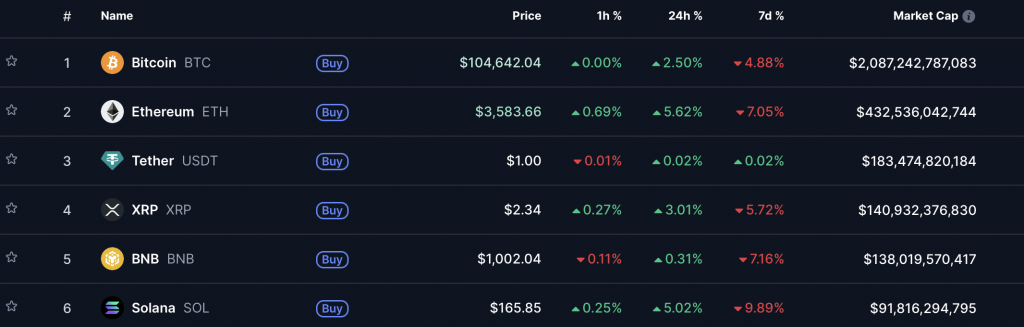 (Top Coins nach Marktkapitalisierung – Quelle: Coinmarketcap