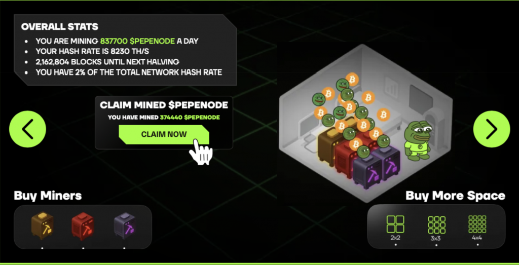 PepeNode setzt daher auf eine andere Struktur. Der PEPENODE-Token bildet den Ausgangspunkt sämtlicher Fortschritte innerhalb des Spiels. Für Upgrades, den Erwerb neuer Nodes und die Erweiterung der eigenen Mining-Infrastruktur wird ausschließlich dieser Token verwendet.