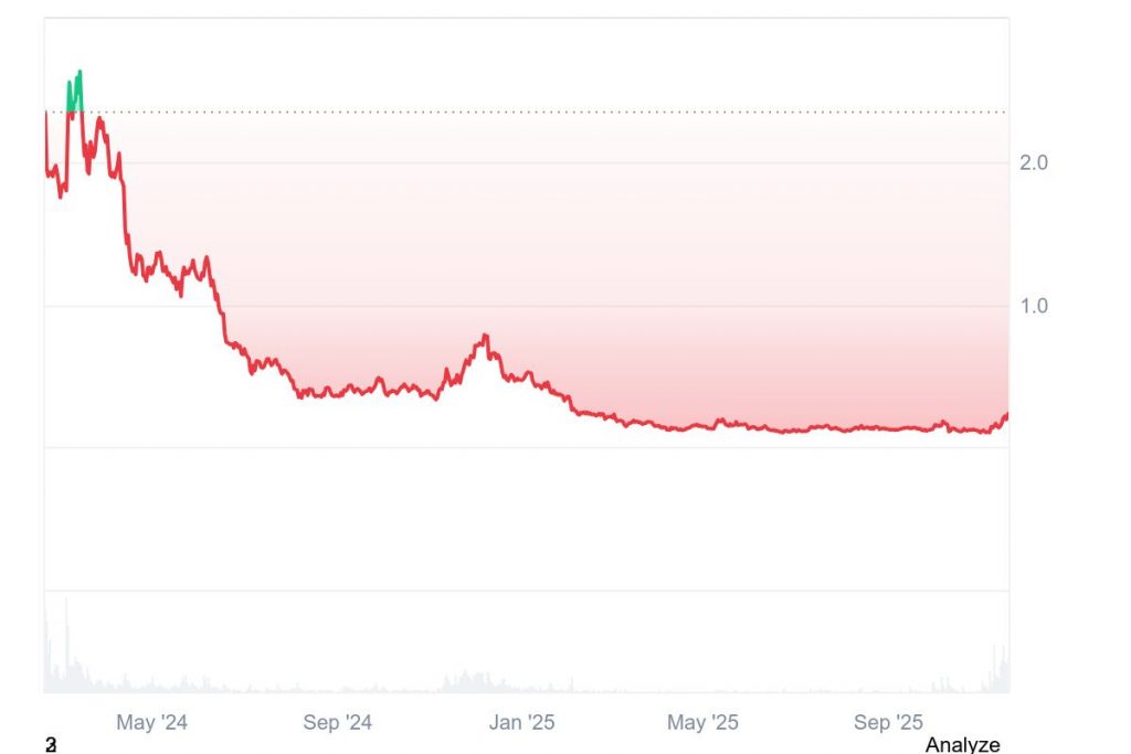 Die Kryptowährung STRK von dem dahinterstehenden Projekt Starknet gibt es bereits seit Anfang 2024. Damals kam es direkt zu einer starken Rallye, die den Kurs auf ein All-Time-High von bis zu 3,66 $ trieb. Daraufhin ließ das Investitionsinteresse jedoch deutlich nach, und es folgte eine heftige Entwertung des Starknet-Coins. Schon Mitte 2024 lag der Kurs nur noch bei circa 0,5 $ und im Verlauf des letzten Jahres ist der Preis bis auf Tiefststände von zwischenzeitlich nur noch 0,1 $ eingebrochen.