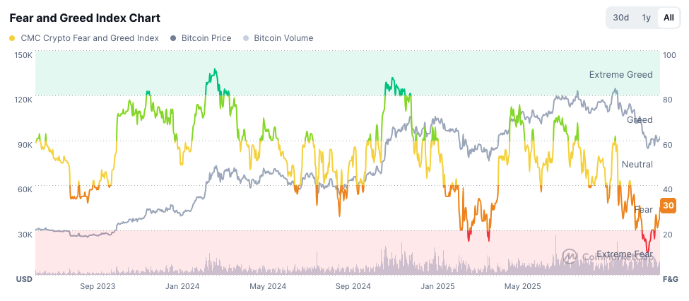 ETH schoss seit gestern um 7,5 % in die Höhe und kratzte bereits an der 3.400-Dollar-Marke. Auch Solana konnte um 3,45 % zulegen, und für ADA ging es sogar um 8,5 % aufwärts. Gleichzeitig verbesserte sich das Marktsentiment laut Fear-and-Greed-Index wieder auf 30 Punkte. Damit liegt es zwar weiterhin im unterkühlten Bereich, stellt aber eine deutliche Verbesserung gegenüber den Werten von nur noch 10 Punkten vor rund zwei Wochen dar.