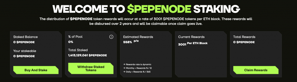 ($PEPENODE Staking Dashboard – Quelle: Pepenode Website