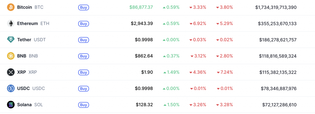 (Top Coins – Quelle: Coinmarketcap