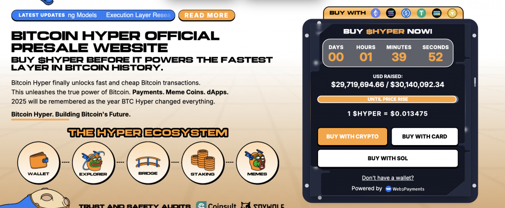 Wer sich aktuell mit Krypto-Presales beschäftigt, stößt unweigerlich auf Bitcoin Hyper. Mit fast 30 Millionen US-Dollar, die bereits im Vorverkauf eingesammelt wurden, zählt das Projekt zu den erfolgreichsten ICOs der vergangenen Jahre. Entsprechend verwundert es nicht, dass auch KI-Modelle wie ChatGPT dem Projekt außergewöhnliches Potenzial zuschreiben. Ausschlaggebend für das große Interesse ist jedoch weniger der Hype, sondern vor allem der konkrete Nutzen, den Bitcoin Hyper adressiert.