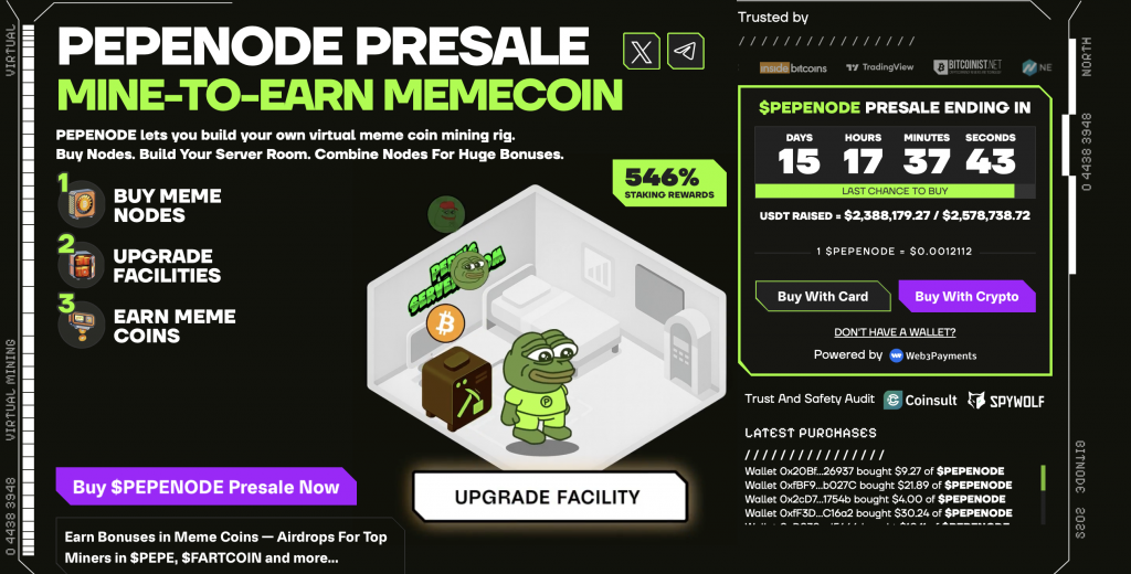 Der Presale von $PEPENODE läuft allerdings nur noch wenige Tage. Bis zum Ende können Anleger noch zu einem festen, günstigen Preis einsteigen. Ein Großteil der Token befindet sich bereits im Staking, was die verfügbare Umlaufmenge beim Launch reduziert und die Wahrscheinlichkeit einer starken Kursbewegung nach dem Börsenstart erhöht.