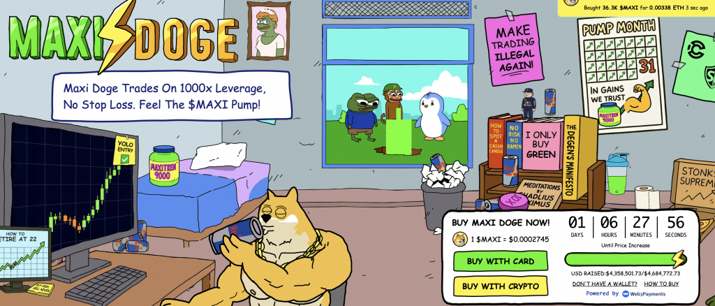 Aus diesem Grund richten viele Investoren ihren Fokus auf deutlich kleinere Meme Coins, bei denen bereits vergleichsweise geringe Kapitalzuflüsse ausreichen, um extreme Kurssteigerungen auszulösen. Maxi Doge befindet sich aktuell noch im Presale und hat bislang rund 4 Millionen US-Dollar eingesammelt. Damit gehört das Projekt zwar bereits zu den erfolgreicheren Vorverkäufen, bietet aber weiterhin erheblichen Spielraum nach oben.