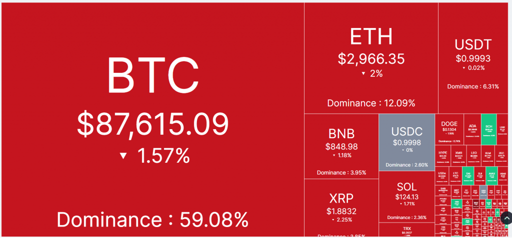 Die Krypto Heatmap ist in tiefes Rot getaucht, Quelle: https://coinmarketcap.com/crypto-heatmap/