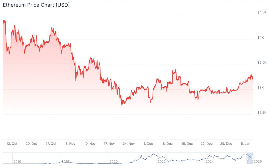 Auch die Kursentwicklung von Ethereum passt zu diesem Bild. Nach dem kräftigen Rücksetzer im vierten Quartal 2025, hat sich der Kurs in den vergangenen Wochen spürbar stabilisiert. Aktuell bewegt sich ETH im Bereich von etwa 3.150 bis 3.200 US-Dollar.
