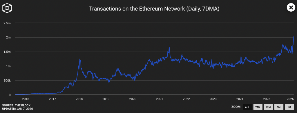 Hinzu kommt, dass die Netzwerknutzung nahe zyklischer Höchststände liegt. Die täglichen Transaktionen steigen, statt zurückzugehen, was darauf hindeutet, dass Marktteilnehmer das Ethereum-Ökosystem aktiv nutzen und nicht verlassen. Eine hohe Netzwerkauslastung führt gleichzeitig zu stärkerem ETH-Burn, was das umlaufende Angebot zusätzlich verknappt.