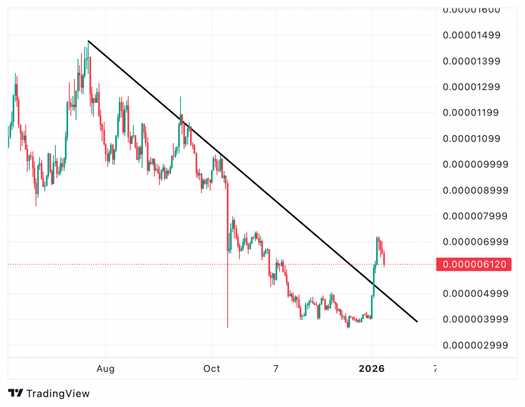 Begleitet wurde der Rebound von einem deutlichen Volumenanstieg: Das Tagesvolumen erreichte Niveaus, die zuletzt im frühen vierten Quartal zu sehen waren. Solche Volumenspitzen gelten eher als Zeichen gezielter Positionierung als bloßes Short-Covering. Marktbeobachter verweisen darauf, dass Meme-Assets selten nachhaltig steigen, ohne dass dahinter echte Liquidität steht