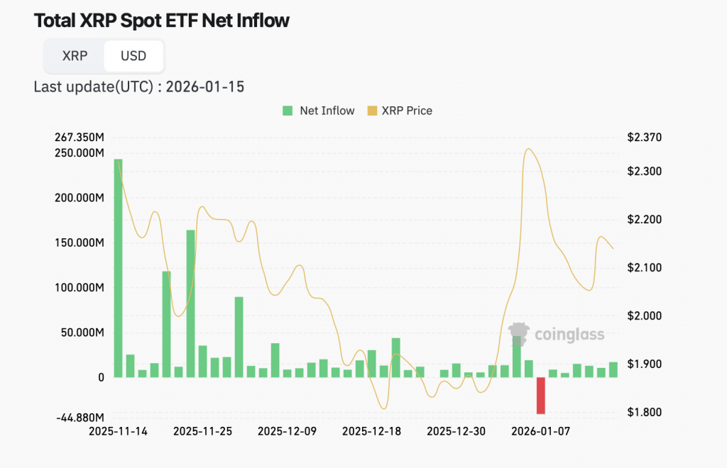 (Kapitalzuflüsse bei den Spot XRP ETFs – Quelle: Coinglass)
