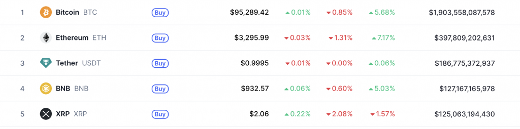 (Top Coins nach Marktkapitalisierung – Quelle: Coinmarketcap)