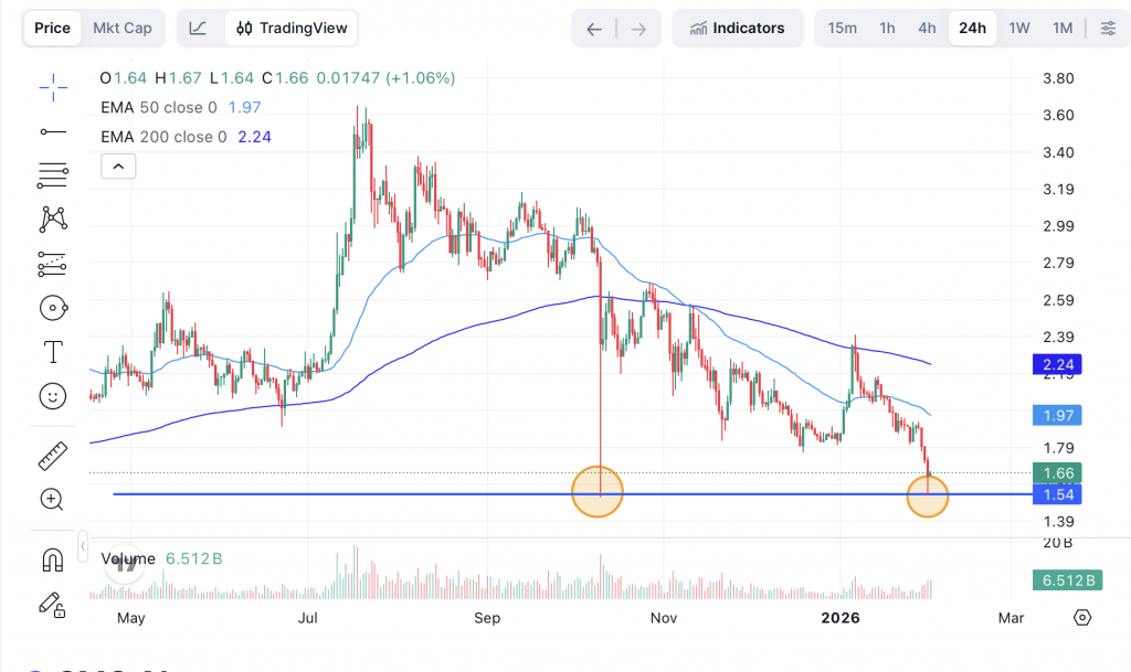Aus charttechnischer Sicht hat XRP einen Bereich erreicht, der in der Vergangenheit bereits als Wendepunkt fungierte. Rund um die Zone zwischen 1,50 und 1,55 US-Dollar zeigte sich auch diesmal wieder verstärktes Kaufinteresse. Nach dem jüngsten Tief kam es bereits zu einer spürbaren Gegenbewegung, was darauf hindeutet, dass viele Marktteilnehmer dieses Niveau als attraktiv einschätzen.