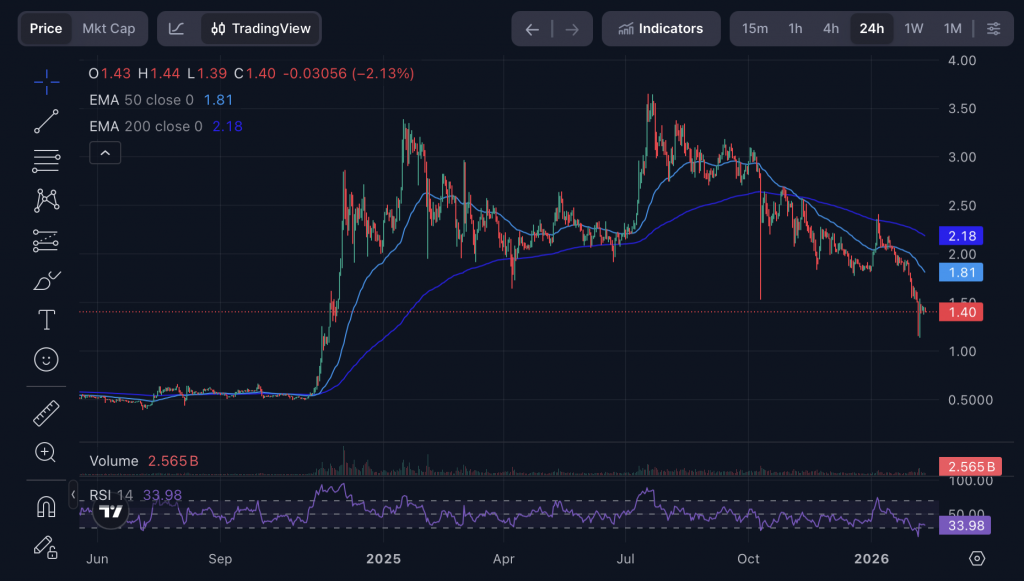 Auch aus charttechnischer Sicht bleibt die Lage angespannt. XRP notiert klar unter der 50- und der 200-Tage-Linie, was in der technischen Analyse als klassisches Schwächesignal gilt. Der Relative-Stärke-Index bewegt sich ebenfalls im überverkauften Bereich, ohne bislang eine überzeugende Gegenbewegung einzuleiten. Gleichzeitig nehmen die Abflüsse aus XRP-bezogenen Anlageprodukten zu, was den Verkaufsdruck zusätzlich verstärkt.