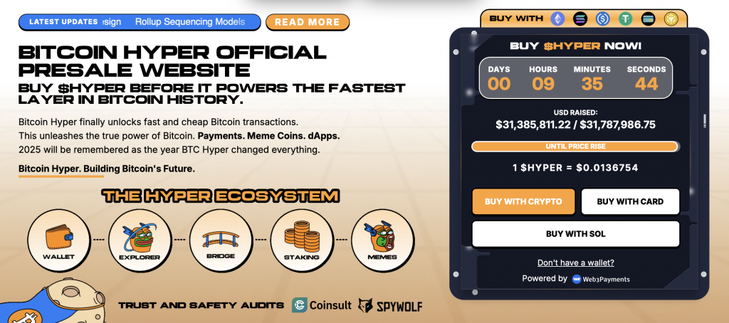 Vor allem aber erfreuen sich Investoren an der Tatsache, dass Bitcoin Hyper noch ganz am Anfang steht und der dazugehörige $HYPER-Token derzeit noch im Vorverkauf erhältlich ist. Während dieser Zeit können Investoren noch zum günstigen Fixpreis einsteigen, der bis zum Börsenlisting sogar noch mehrfach erhöht wird, sodass frühe Käufer schon einen ersten Buchgewinn mitnehmen.