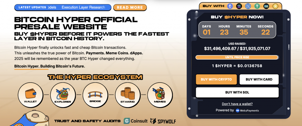 Bitcoin Hyper steigt auf 31,5 Millionen Dollar