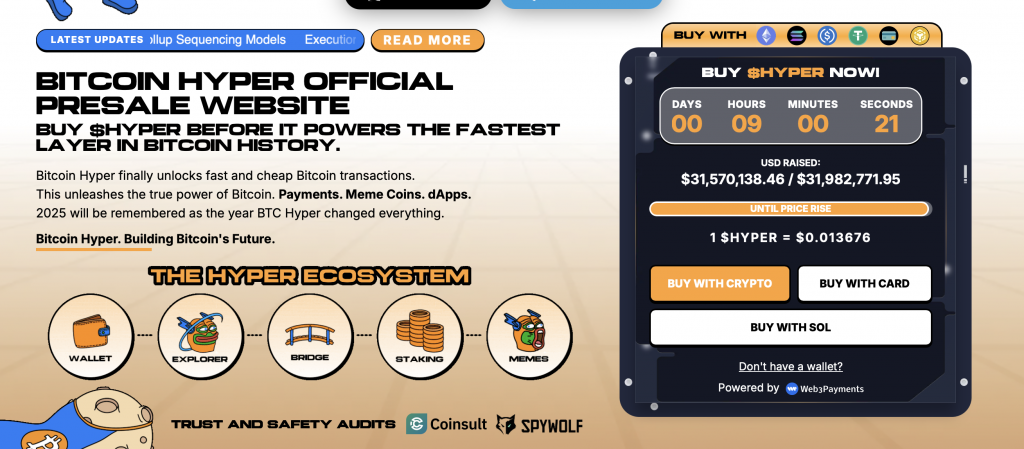 Der zugehörige $HYPER-Token befindet sich derzeit noch im Vorverkauf, wobei bereits Investitionen von über 31 Millionen US-Dollar eingesammelt wurden. Viele Marktbeobachter sehen darin ein Zeichen wachsender Nachfrage nach Bitcoin-basierter Infrastruktur, insbesondere in Marktphasen, in denen Anleger nach langfristigen Entwicklungen statt kurzfristiger Kursbewegungen suchen. Die Prognosen für Bitcoin Hyper überschlagen sich bereits, sodass es sich hier um einen der vielversprechendsten Altcoins in diesem Jahr handeln könnte.
