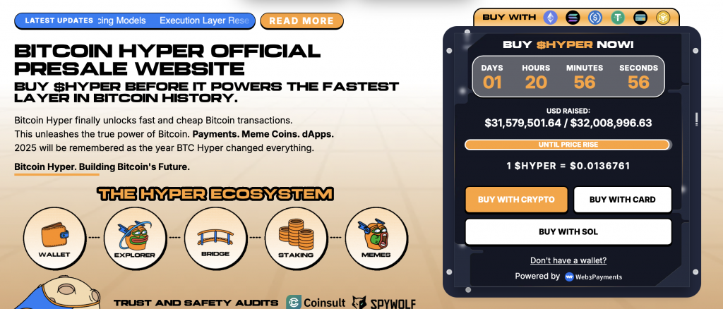 Neben etablierten Smart-Contract-Plattformen entstehen aktuell zunehmend Infrastrukturprojekte, die Bitcoin technologisch erweitern sollen. Bitcoin Hyper verfolgt dabei den Ansatz, eine Layer-2-Lösung zu schaffen, die schnellere Transaktionen, geringere Gebühren und Zugang zu DeFi-Anwendungen ermöglicht.