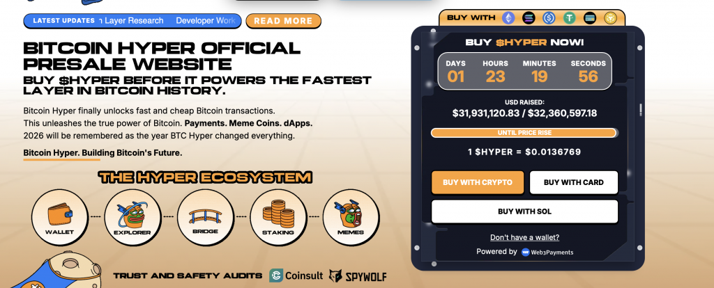 Da sich Bitcoin Hyper derzeit noch in einer frühen Entwicklungsphase befindet, beobachten viele Investoren das Projekt mit großem Interesse. Aktuell ist der $HYPER-Token nämlich noch im Vorverkauf erhältlich und die Nachfrage ist bereits jetzt extrem hoch, sodass fast 32 Millionen Dollar umgesetzt wurden. Daher gehen einige Analysten davon aus, dass der Kurs nach dem Launch schnell um ein Vielfaches steigen könnte.