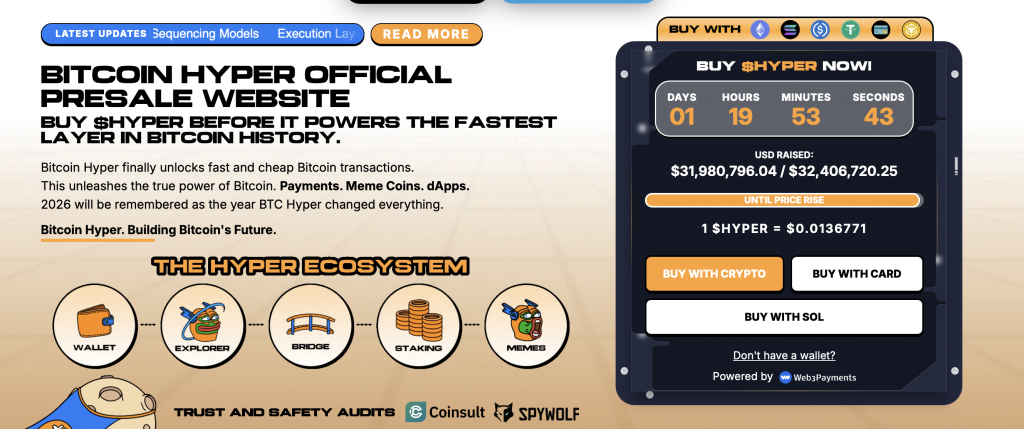 Der zugehörige $HYPER-Token befindet sich aktuell noch im Vorverkauf. Frühzeitige Investoren können den Token daher noch vor dem Börsenlisting zu einem festen Preis erwerben. Da bereits rund 32 Millionen Dollar in das Projekt investiert wurden, erwarten einige Analysten, dass Bitcoin Hyper nach dem Launch deutlich an Aufmerksamkeit gewinnen könnte.
