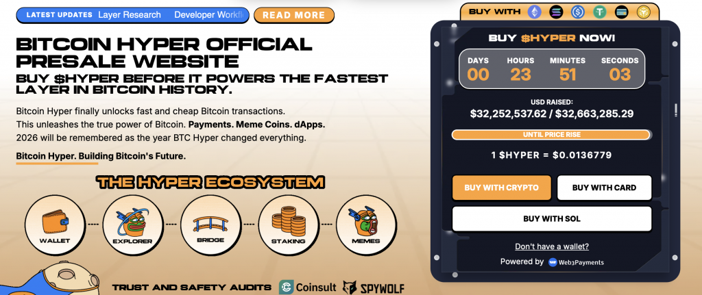 Da sich Bitcoin Hyper noch in der Vorverkaufsphase befindet, sehen viele Investoren hier eine Chance auf extrem hohe Renditen, da die Nachfrage schon jetzt explodiert und einige Analysten nach dem Börsenlisting einen Kursanstieg um weit mehr als das 10-fache für möglich halten.