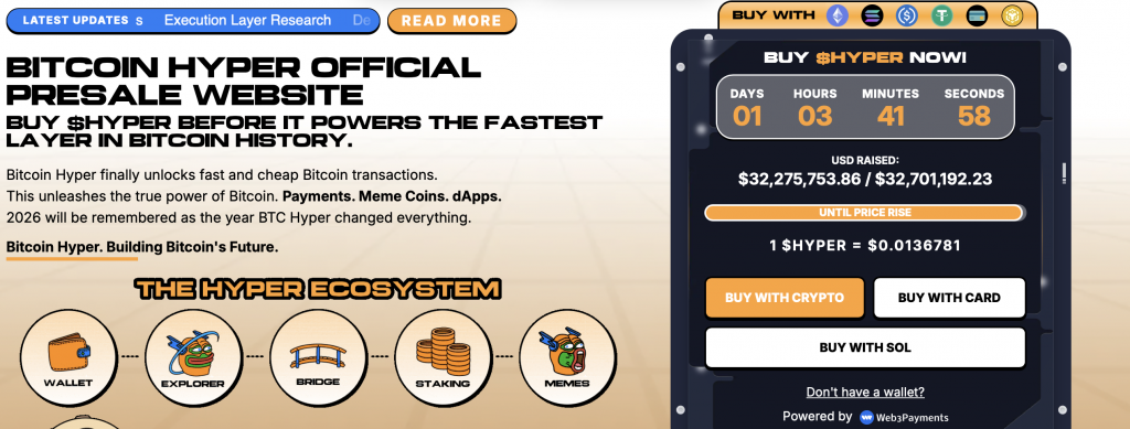 Der $HYPER-Token befindet sich aktuell noch im Presale und hat bereits mehrere Millionen Dollar an Kapital eingesammelt. Frühinvestoren profitieren dabei von steigenden Preisen innerhalb der einzelnen Presale-Phasen.