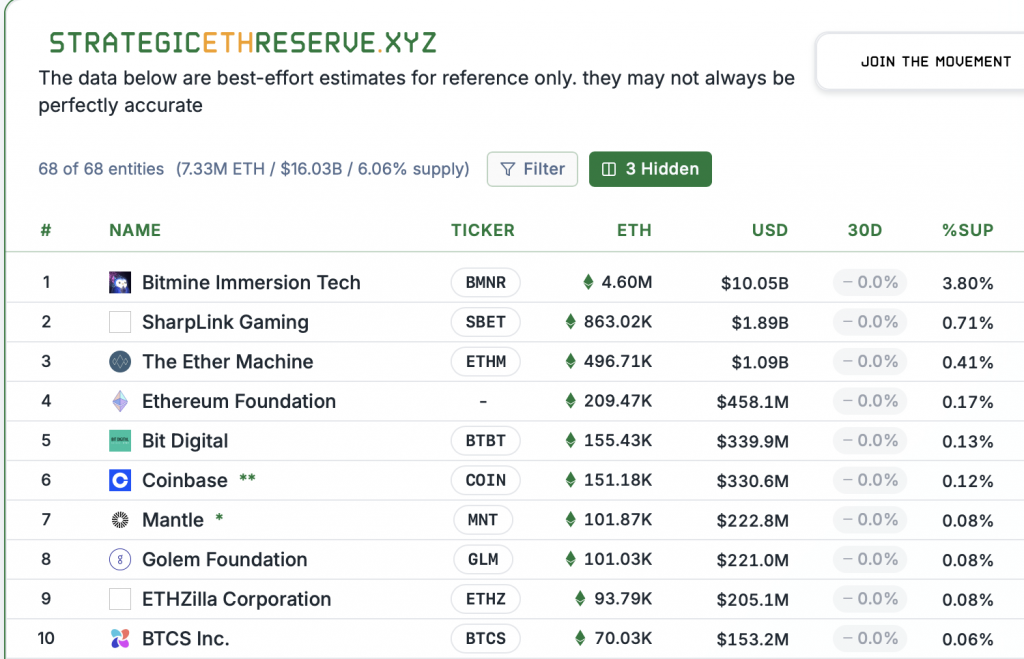 Die Dynamik rund um Bitmine Immersion Technologies ist bemerkenswert. Aktuellen Daten zufolge hält das Unternehmen inzwischen rund 4,6 Millionen ETH, was etwa 3,8 bis über 4 Prozent des gesamten Angebots entspricht. Damit ist Bitmine bereits jetzt einer der größten bekannten Ethereum-Halter weltweit – noch vor zahlreichen etablierten Institutionen. Der jüngste Meilenstein: Erstmals wurde die 4-Prozent-Marke überschritten.
