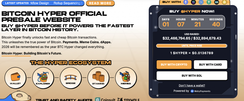 Der laufende Vorverkauf des dazugehörigen $HYPER-Tokens zeigt bereits ein starkes Interesse, da Anleger inzwischen über 32 Millionen Dollar in den neuen Coin investiert haben, noch bevor dieser an den Kryptobörsen gelistet wurden. Analysten gehen daher davon aus, dass der Kurs nach dem Launch schnell um ein Vielfaches steigen könnte.
