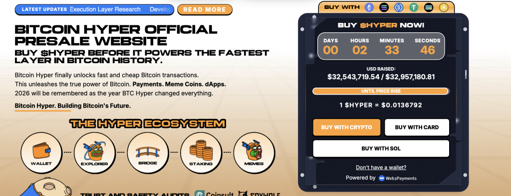 Während Solana versucht, seine Position im Markt zu festigen, entstehen parallel neue Ansätze rund um Bitcoin selbst. Ein Beispiel dafür ist Bitcoin Hyper ($HYPER).