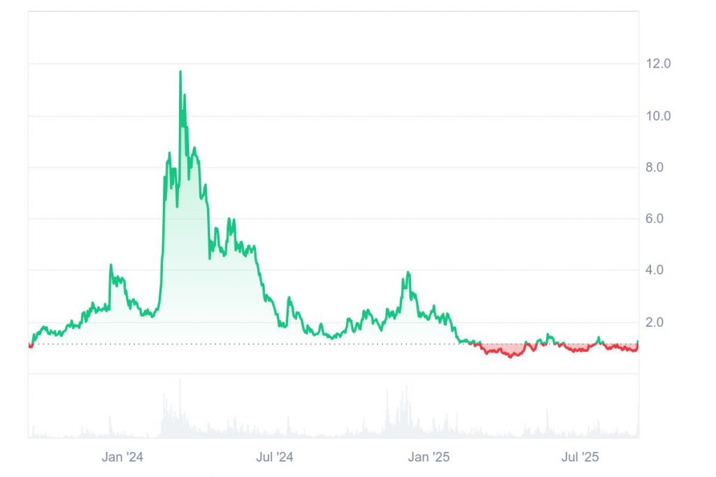 Kurstechnisch lief es für WLD zuletzt jedoch alles andere als positiv. Nach dem Erreichen eines Allzeithochs bei bis zu 11,82 $ im März 2024 brach der Kurs im Verlauf des letzten Jahres deutlich ein und begann das Jahr 2025 bei kaum mehr als 2 $. Seitdem hat das Interesse weiter nachgelassen, und es kam bis zum April zu einer Korrektur auf zwischenzeitlich nur noch 0,60 $.