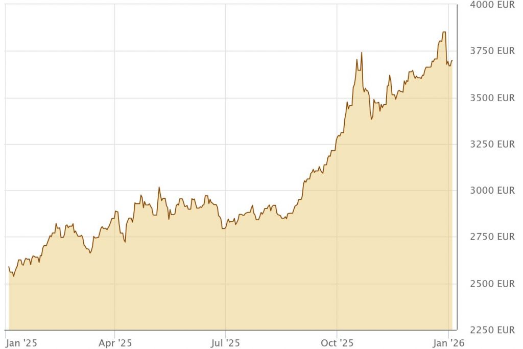Silber verzeichnete 2025 einen außergewöhnlichen Anstieg von rund 160 %, Gold legte um etwa 66 % zu. Auch die großen Aktienindizes entwickelten sich robust: Der Nikkei, Hang Seng und DAX erzielten jeweils rund 25–30 %, der Nasdaq über 20 % und selbst der S&P 500 schloss deutlich im Plus. Bitcoin hingegen beendete das Jahr trotz ETF-Zuflüssen, institutioneller Nachfrage und fortgesetzter Käufe großer Marktteilnehmer mit einem Minus von rund 5 %.